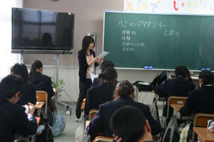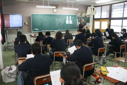 11月26日(月)27日(火)の6校時,特別学活を設定し,後期人権学習を行いました。各学年ともテーマにそって2時間扱いで学習し,27日(火)6校時は公開授業として取り組みました。1年生は「共に歩き,共に生きる心の育成」のテーマで,障害者差別について,2年生は「対等な社会関係の育成・民族差別を払拭する」のテーマで,外国人問題・多文化共生について,3年生は「共に生きる態度の育成・対等な人間関係の育成」のテーマで男女平等についてそれぞれ学習しました。今後も本校の教育目標「人権の尊重を基盤として,心豊かで,たくましく生きる生徒の育成を図る」に向け,学年に応じて,また,教科の学習とも関連させながら人権学習に取り組みます。