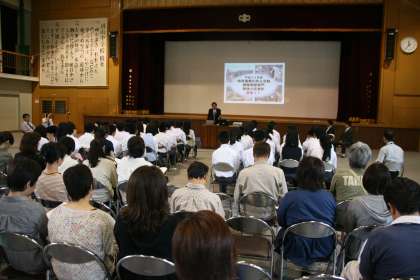 学校長の挨拶の後、本校進路指導主事から・平成24年度卒業生の進路状況・進路決定に向けて・今年度変更される京都の入試制度について等の説明がありました。