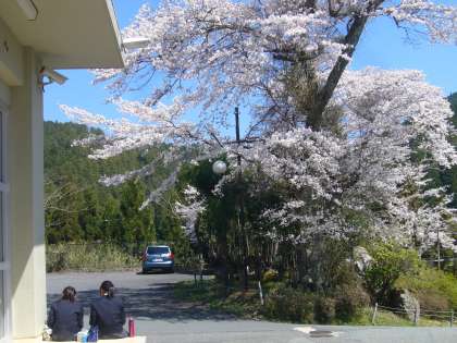 ここ京北では、まだまだ桜が残っています。今日は昼間明るい日差しでポカポカ陽気の中のお弁当でした。