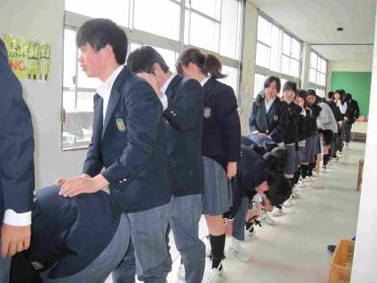 5月15日(木)あいにくの空模様で、朝から雨が降ったりやんだりの一日でしたが、3年生はこの日、来る6月11日(水)に開催される「体育祭」に向けての練習を行いました。