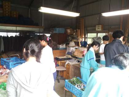 朝から採れた野菜を洗ったり、仕分けしたり、袋詰めして並べたりなどいきいきと働いていました。