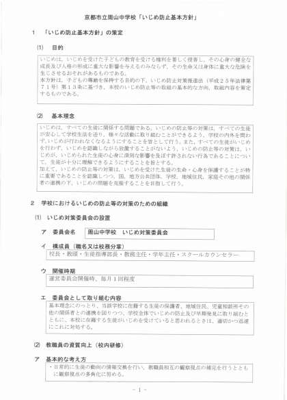 周山中学校 「いじめ防止基本方針」