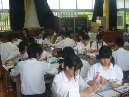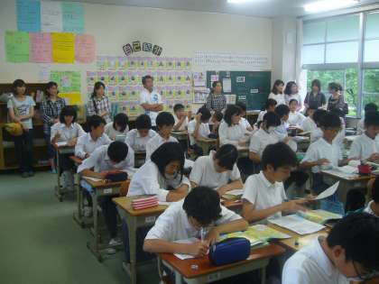 当日は曇りですが昨夜の雨も上がり、涼しくて、中学校には、お父さんやお母さんと小さい子どもたちなどの家族連れでいっぱいになり、大勢の参観で賑わいました。
