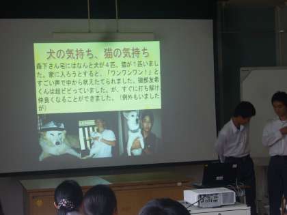 民家の方との暖かい交流や、鹿児島ならではの海や自然の体験、夜の食事や仲間の行動などを、写真等を交えて楽しく紹介してくれました。