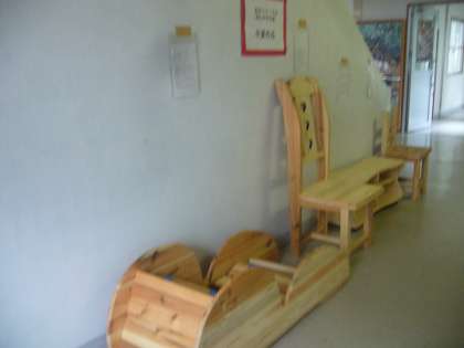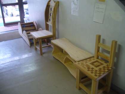 これは、北桑田高校のご厚意で周山中学校卒業生の「卒業製作」である、木工作品をお借りして展示しているものです。