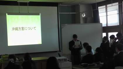 3月10日(火)の6限に被服室で、来る4月16日(木)〜18日(土)に実施される沖縄方面への修学旅行の「事前学習発表会」が被服室で行われました。