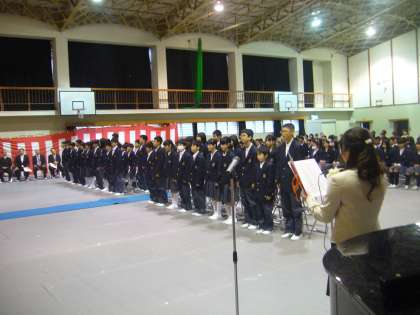 真新しい、幾分大きめの制服に身を包んだ38名の新入生が、参列者の拍手を浴びながら、幾分緊張気味の表情で式場に入場してきました。
