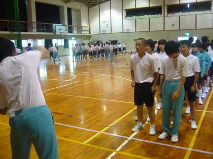 最後に各組ごとに、円陣になり肩を組み合って「掛け声」の練習をしました。