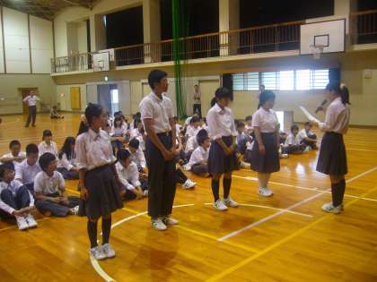 夏休み前最終日の前日7月16日(木)の6限に、体育館で全校集会が行われました。