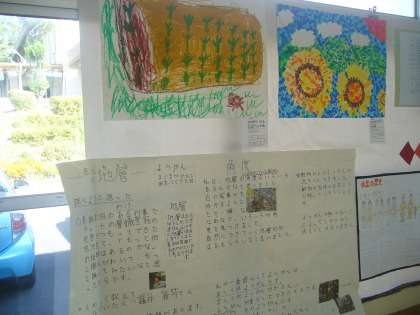 作品の内容は、1年「たんぽぽにいるかめ」(絵)、2年「ひまわり」(貼り絵)、3年「花のずかん」(研究)、4年「沖なわの海」(絵)、5年「京北の地層」(研究)、6年「衣装の歴史」(研究)です。