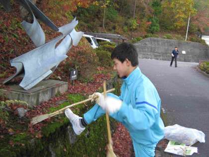 「あうる京北」では、この日施設の外の清掃作業を任せてもらいました。広い敷地内にたくさんの落ち葉が広がっており、那なかなか大変な作業でしたが、頑張って黙々と作業を続けていました。