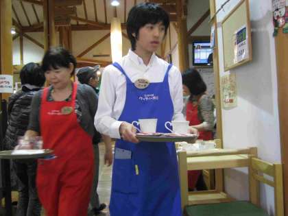 「ウッディー京北」では、奥のレストランで接客を担当していました。なかなか忙しそうに立ち回っていましたが、その中で担当の先生の所へも注文を取りに来てくれていました。