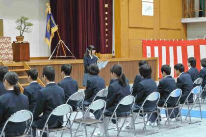 厳粛な雰囲気の中、学校長の式辞(3つの学校教育目標に由来して「英知」、「敬愛」、「健康」)についての式辞、来賓のPTA会長からの祝辞の後、在校生からの「歓迎のことば」と、続いて新入生代表による「誓いのことば」が堂々と披露され、式は立派に滞りなく終了しました。