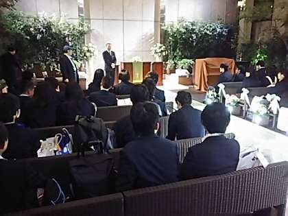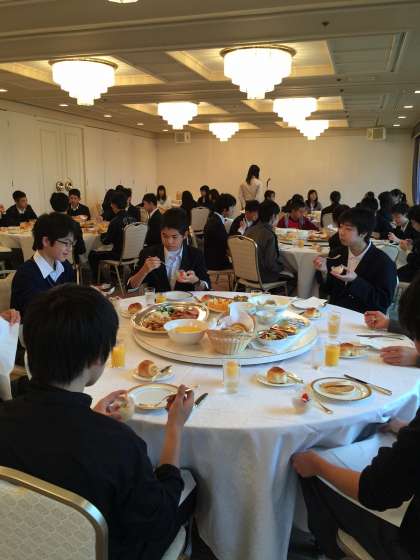 朝食をみんなで楽しんだ後、ホテルの「退所式」です。