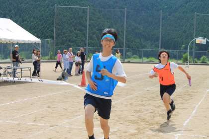競技も終わりに近づき「縄取り」では縄を追って転んで砂まみれになり、「全員リレー」で盛り上がりは最高緒に達しました。