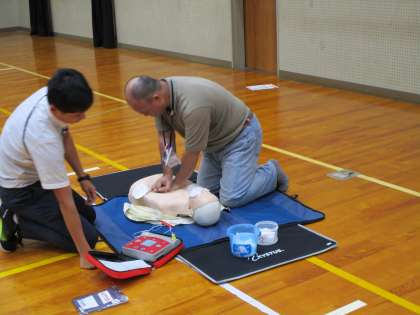 午後には体育館で、教職員対象の救急救命講習会が開催されました。