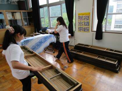 8月19日(金)、6月の休日参観の折に保護者の方からお申し出のあった音楽室の「長椅子」がきれいになって戻ってきました。