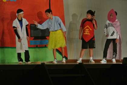 最後は3年1組の劇「桃太郎〜アナザーストーリ〜」という事で、桃太郎に出てくる登場人物に加え、テレビでもおなじみの「三太郎」などオリジナルキャラクターたちが繰り広げる友情の物語です。