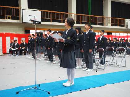 新入生代表生徒からは,お互いを信頼し認め合うこと・何事にもチャレンジすることを誓いの言葉として述べられました。