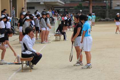 5月3日(祝),ソフトテニス部の団体戦が,四条中学校で行われ,桂川中学校と対戦しました。テニス部の部員は3年生4名,2年生1名の5名で,第三ペアはオープン参加(勝っても負けてもカウントされない)という不利な条件の中対戦しました。第一ペアは第一ゲームを先取するなどいい立ち上がりでしたが,残念ながら逆転負けとなりました。第二ペアも1ゲームは取れたものの敗れてしまいました。この春,1年生が多数入部しましたのでこれからが楽しみです。