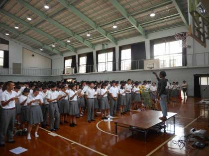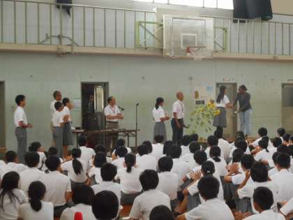 各学年の代表生徒の英語によるスピーチや全校生徒による英語の歌、