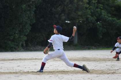 台風一過の気持ちいい天候の下で、ひたむきにプレーする姿はさわやか