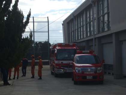 11/18(木)5限時に西京消防署の方々にもお越しいただき、事前指導→地震発生→火災発生→緊急放送→全校避難の手順で避難訓練を行いました。消防署員の方の講話・学校長のお話=「お・は・し・も・て」の確認などを行いました。