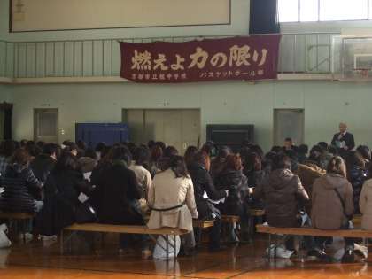 6年生が体験授業をしている同時刻に第2体育館では保護者対象の入学説明会が行われました。ごあいさつ、学校教育目標(重点目標)の説明、教育課程、預り金、来年入学式予定、学校生活のきまりやお願いなどをお話させていただき、その後各教室に分かれて子どもたちの体験授業を参観していただきました。お忙しい中多数ご来校いただきありあがとうございました。