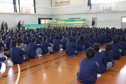 今日は、3学年の生徒が初めてそろい、活気にあふれていました。