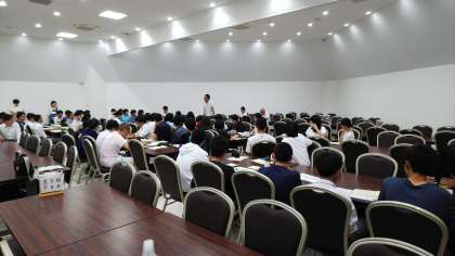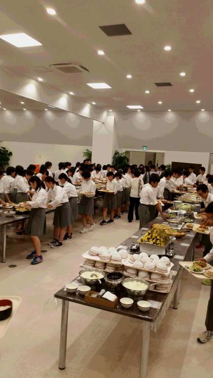 美味しいバイキングです。みんな、凄い食慾。お腹一杯食べました。そのあとは各部屋長が就寝前に集まって、反省会と明日の確認です。部屋に戻ってメンバーに報告です。