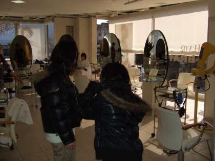 活動の様子です。一番上と真ん中が美容室、一番下が衣料品店での様子です。