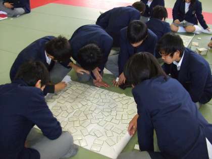 1/27(木)5限、冷え込む第1体育館で2年生百人一首大会が行われました。2年生は昨年1度経験しており、国語の授業でも学習しているので昨年より「上の句」が詠まれてから札を取るスピードが速くなったようです。激戦の結果は以下の通りです。