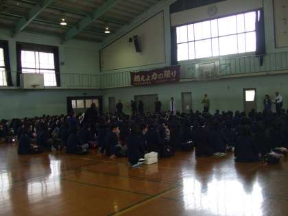 2/9(水)明日からの京阪神を中心とした私立高校入試に備えて、3年生は入試に対する最終の心構えと打ち合わせのための学年集会が行われました。