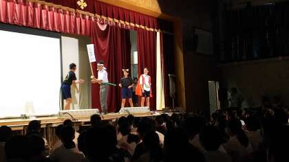 生徒会本部役員中心に、クロージングを劇で飾ってくれました。桃太郎をモチーフにし、一般生徒も巻き込んで楽しいものになりました。「うちらで桂中つくるねん」を合い言葉に締めくくられました。生徒会本部を始め、どの学年・どの発表・どの展示も生徒が主体となって取り組み、自主自律の精神を忘れずに進めてくれたことを感じた文化祭であったと思います。