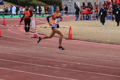5区は3年生Y・Kくん。直前の怪我で出場出来るかどうか危ぶまれていました。しかし見事な復活。昨年のアンカーで、3位入賞を逃して悔しい思いをしていたのを見事にはらしました。小学生時代からの仲間の4区M・Yくんの想いも受け止め、1位を死守してタスキを繋いだ走りは立派でした。