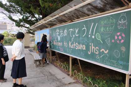 正門のところにある掲示黒板にも、生徒会と美術部がメッセージを書いてくれました。みんなありがとう!