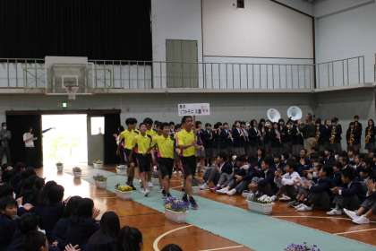 そして、男子ソフトテニス部・サッカー部の入場です。