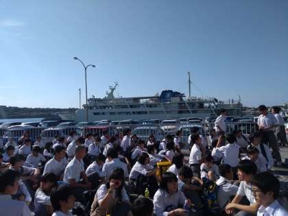予定通りフェリーに乗り、伊江港に到着しました。
