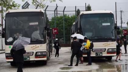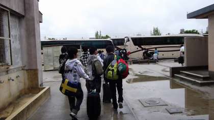 8:45定刻より少し遅れてバスに分乗して学校を出発しました。現在伊丹空港に向かっています。