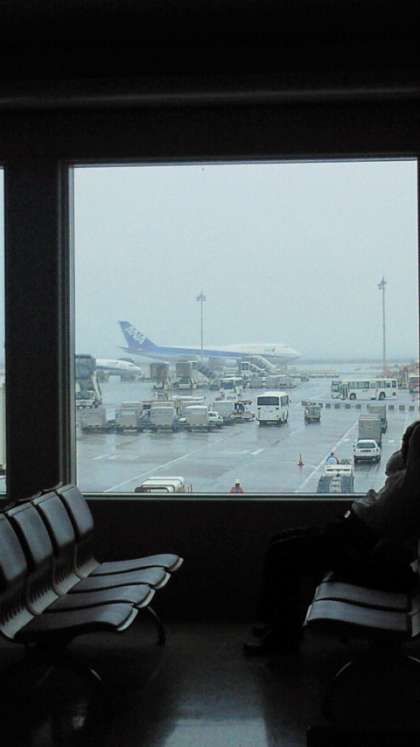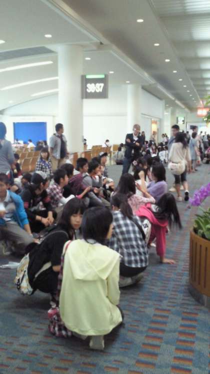 那覇空港ロビーで待機中です