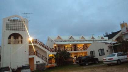 19:15恩納村の3つの宿舎に全員到着しました。このページの写真はプチホテルキーウエストの外観です。こののち各宿舎で夕食になります。