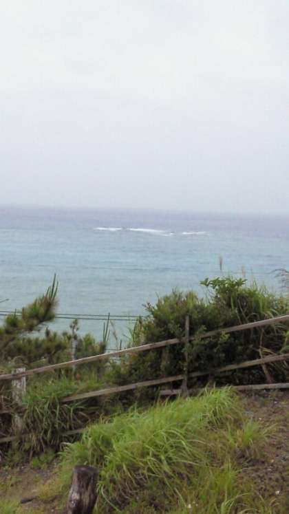 宿舎の駐車場から見た海の様子です。今日の天候は曇りのち雨、何とか持ちこたえて欲しいものです。