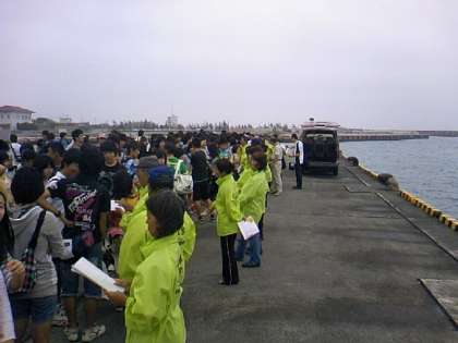 30分の船旅でしたが、船酔いした生徒が2名、教員が1名います(笑)が、時間が経過すれば回復すると思われます。