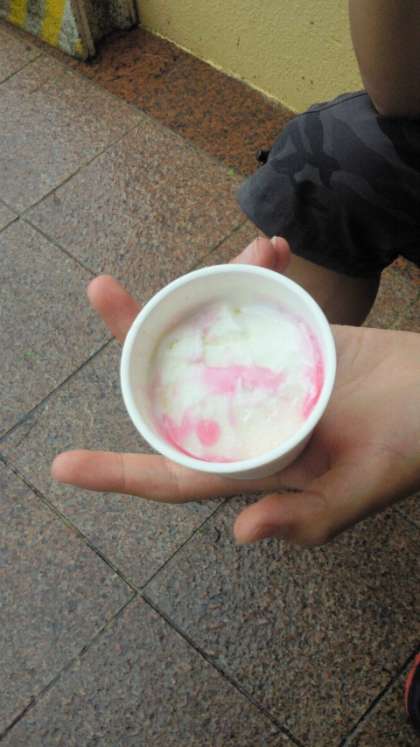 現在伊江島は小雨が降ったり止んだりのどんよりとした天候です。コーラに続いて今度は「伊江島アイス」の登場です。伊江島でしか食べられない逸品だとか・・・。