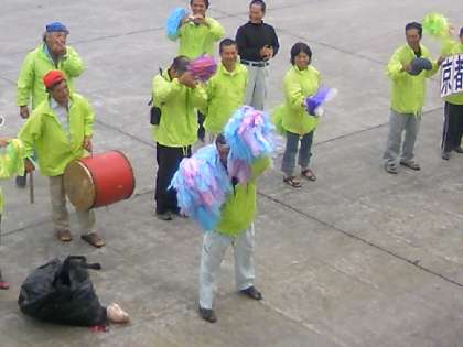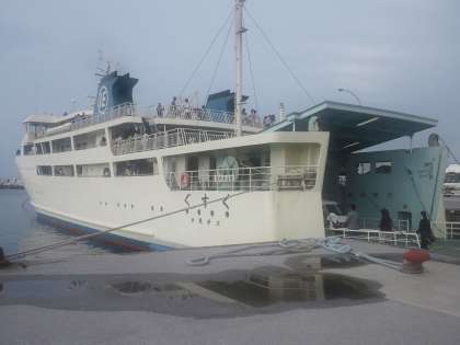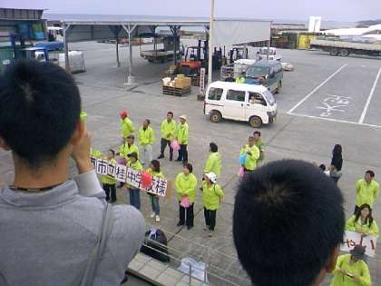 港ではホストファミリーが見送ってくれました。太鼓と笛と踊りで別れを惜しんでくれています。