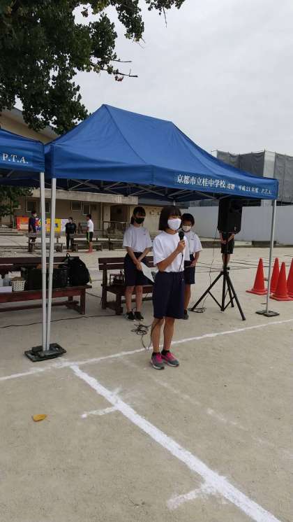 1年生の競技大会が始まりました。生徒の司会で開会式・校長先生の話・選手宣誓です。