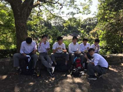 とても気持ちのいい木漏れ日の中でご飯中です。