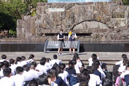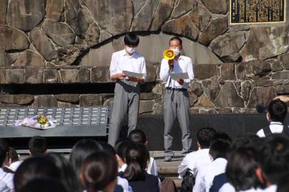 平和のセレモニーは「平和のことば」「ミサンガをつなぐ」「黙とう」となっています。