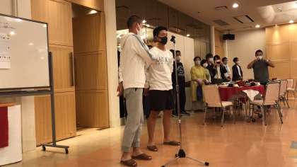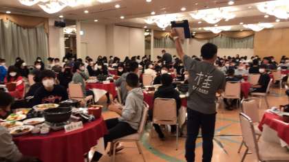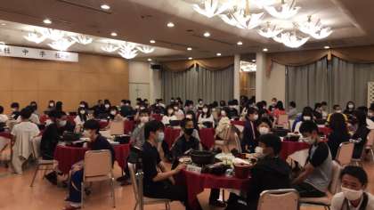 待ちに待った夕食の開始です。みんなマスクもして待っています。