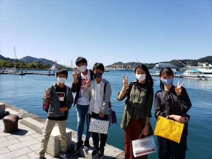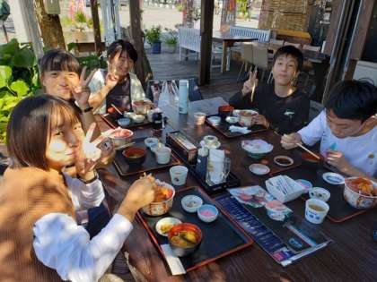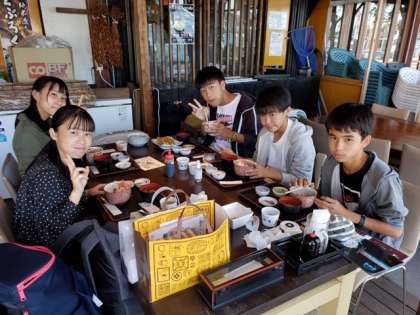 出島ワーフで昼食。海鮮丼でしょうか?中学校も今から昼食です。